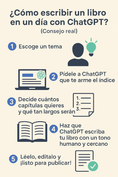 Hola amigos, les comparto mi consejo real, de como escribir un libro en un día usando ChatGPT.